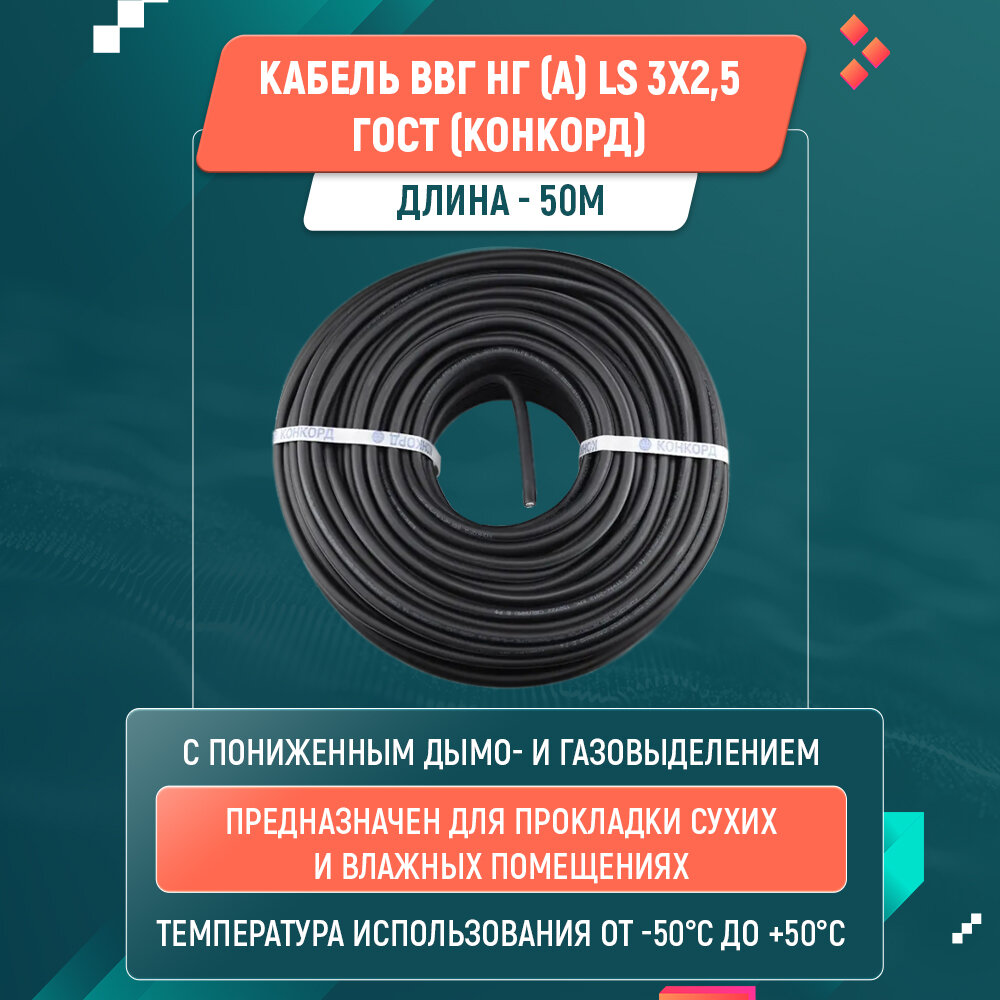 СохранитьКабель силовой ВВГнг(А)-LS 3х2.5 кв. мм Конкорд ГОСТ черный 50 м интересное: