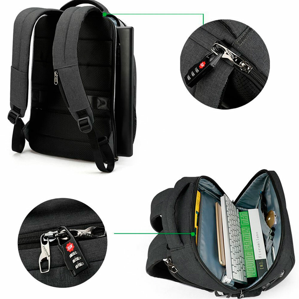 Рюкзак Tigernu T-B3516 для ноутбука, USB-порт для Power Bank, тёмно-серый