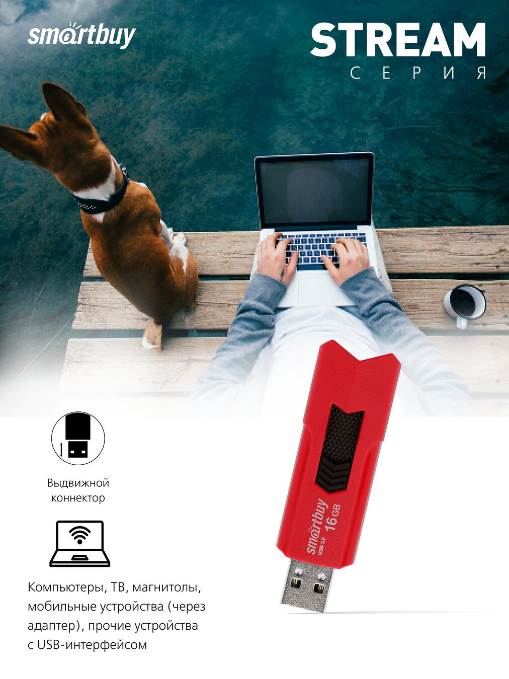 USB 3.0 Флеш-накопитель Smartbuy STREAM 16 Гб, красный