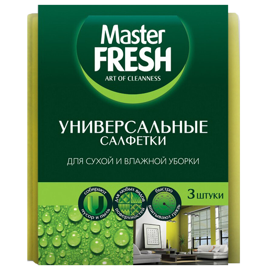 Салфетки универсальные для уборки Master FRESH вискоза, желтый, 3 шт.