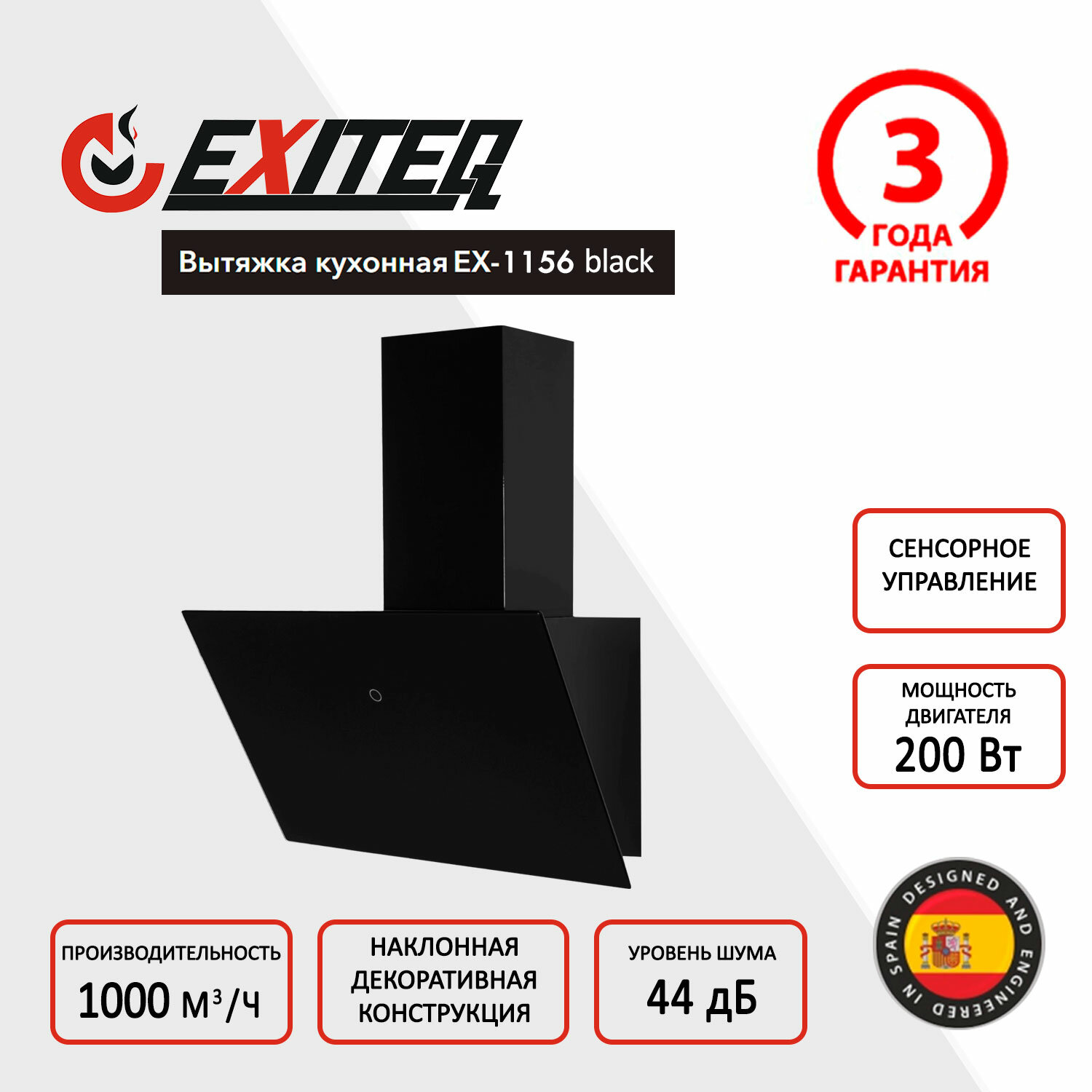 Наклонная вытяжка EXITEQ EX-1156, цвет корпуса black, цвет окантовки/панели черный