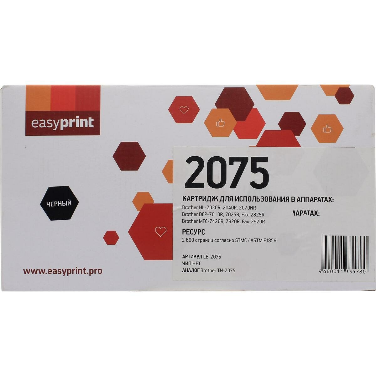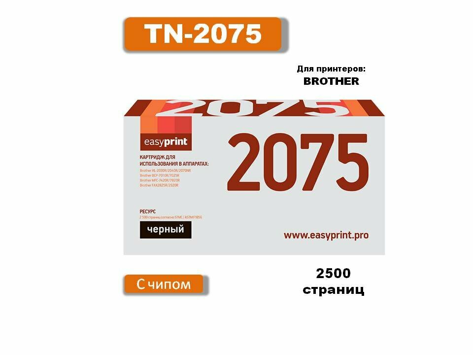 EasyPrint LB-2075 для Brother HL-2030R/2040R/2070NR/DCP-7010R/7025R/MFC-7420R/7820R 2500k (схожий с Brother TN-2075)