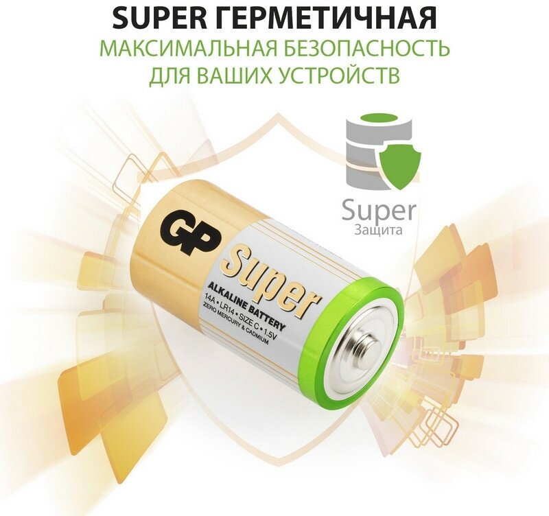 Купить Батарейка GP Super C (LR14) 14A алкалиновая, OS2 (2 штуки)