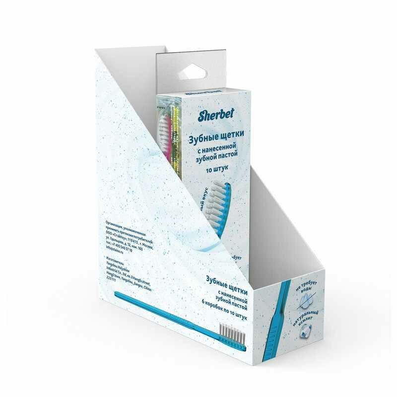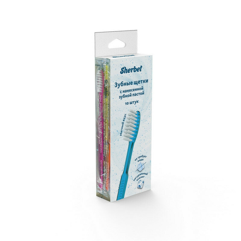 Sherbet - Зубные щетки с нанесенной зубной пастой, пластиковая упаковка с подвесом, 10 шт.