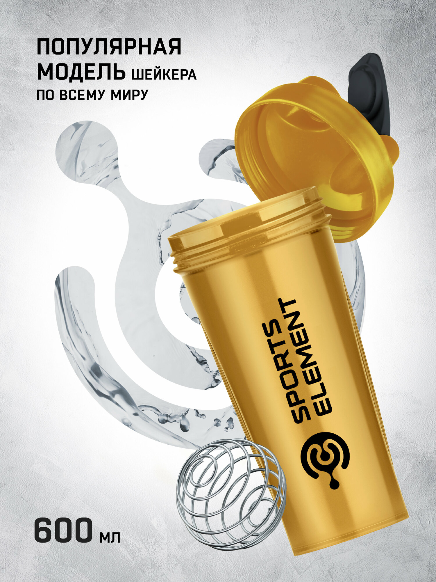 Купить Спортивный шейкер Sports Element "Золото" , 600 мл. с шариком