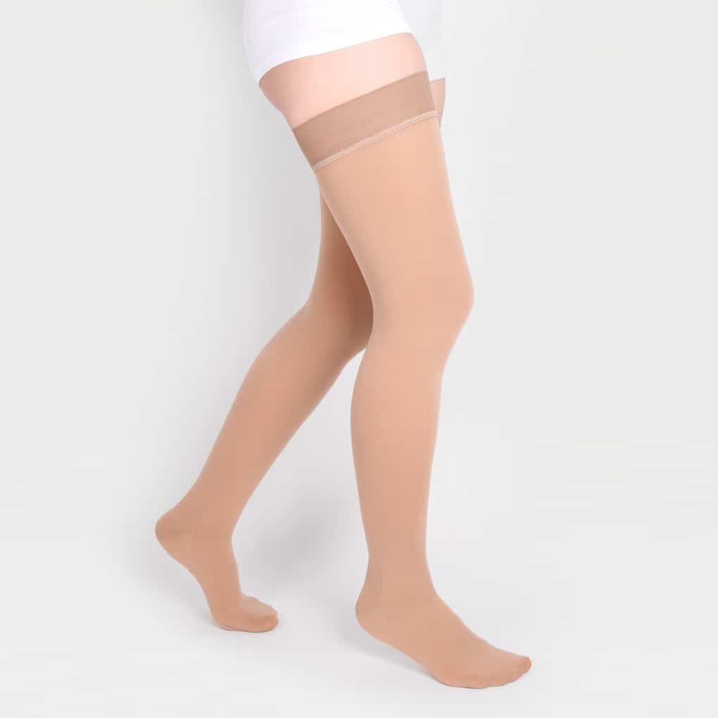 Чулки компрессионные Luomma Idealista на широкое бедро 1-го класса с резинкой на силиконе, ID-300W (Женские, Normal (62-71 см), S, Бежевый)