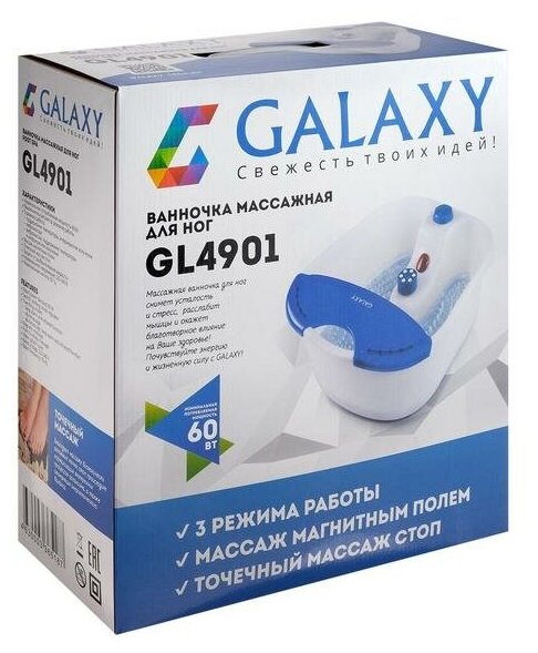 Массажная ванночка для ног GALAXY LINE GL4901 Массажер для стоп и ступней, 3 режима работы, магнитным полем, вибромассаж, точечный, защита от брызг, белый/синий