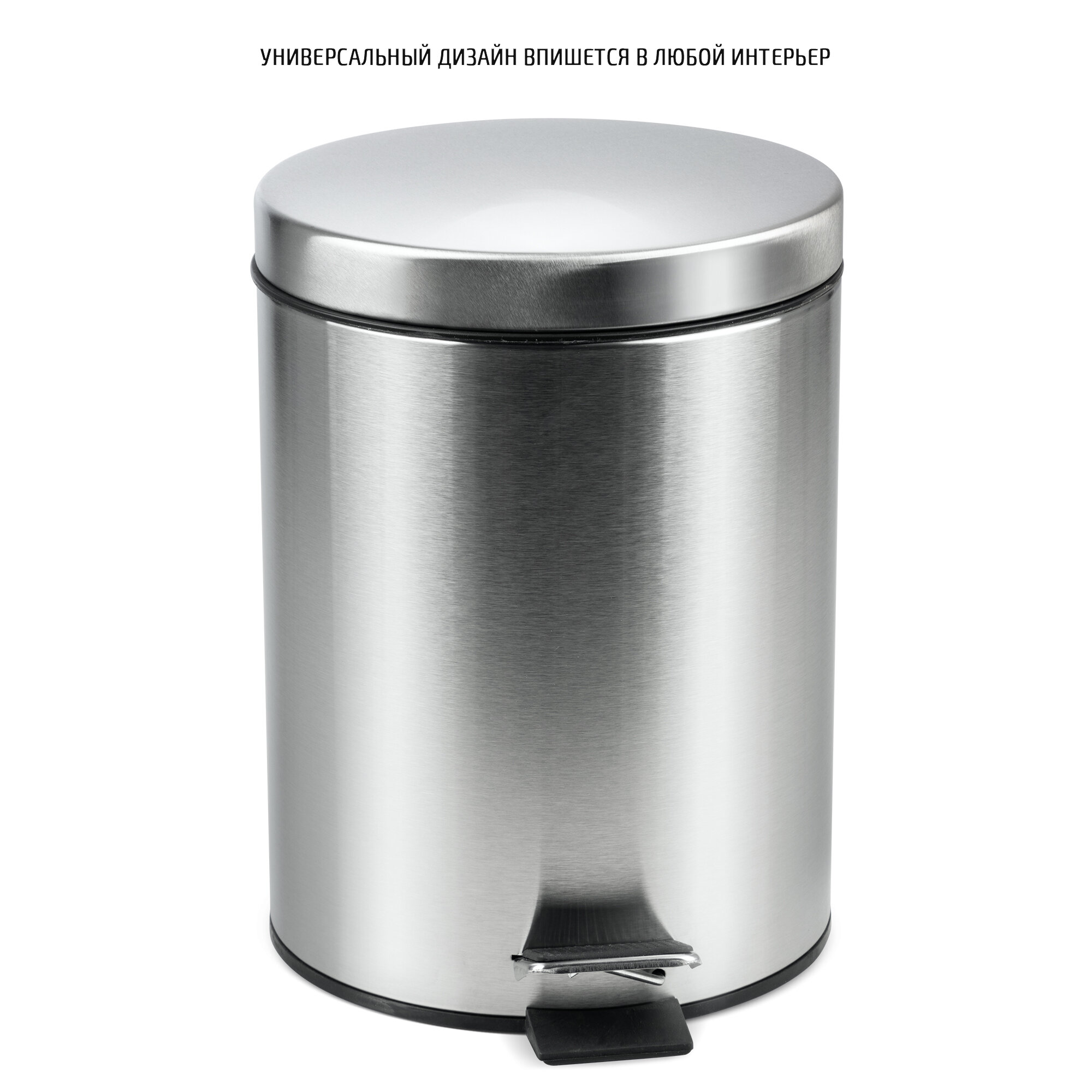 Ведро для мусора круглое 5л, нерж. сталь, матовое, 310430 Mallony/Рыжий Кот