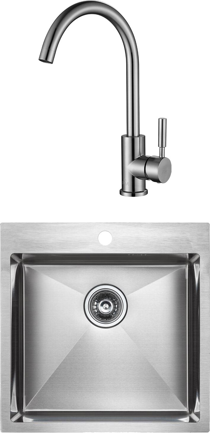 Купить Комплект Paulmark Kroner PM215151-BS брашированная нерж. сталь + Смеситель Paulmark Holstein Ho212063-NI для кухонной мойки, никель
