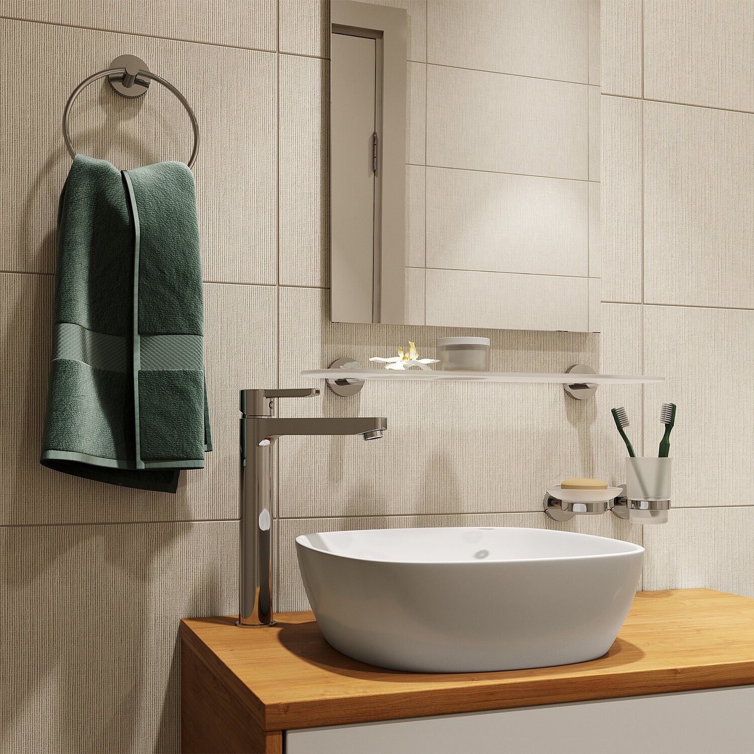 Намного лучше подошёл к раковине из-за своего высокого подъёма и выпуска, чем аналогичный вариант смесителя Grohe |