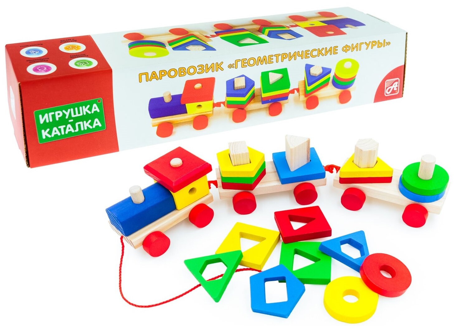 Купить Паровозик-каталка "Геометрические фигуры" (РДИ-Д1017а)