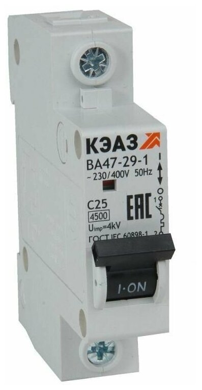 Выключатель автоматический модульный 1п C 25А 4.5кА ВА47-29-1C25-УХЛ3, КЭАЗ 141555 (1 шт.)