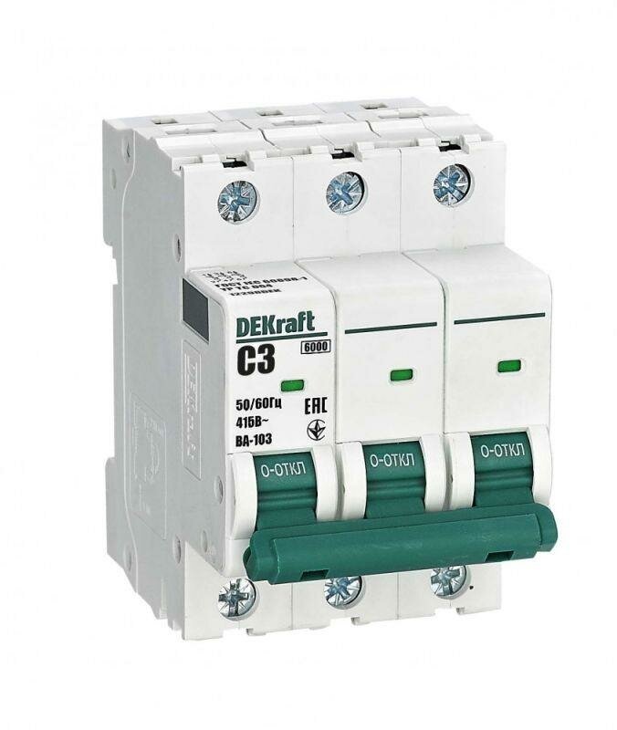 Автоматический выключатель DEKraft ВА-103, 50 ампер, три полюса, характеристика C, 6 кА