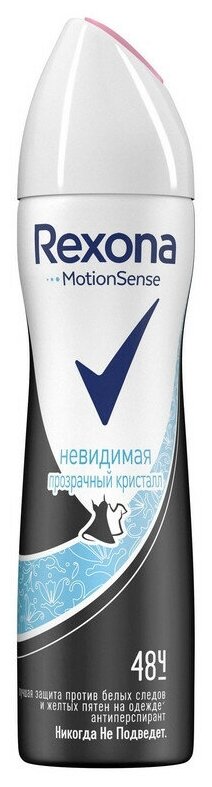 Rexona, Антиперспирант MotionSense Невидимая Прозрачный кристалл (2019), спрей, 150 мл