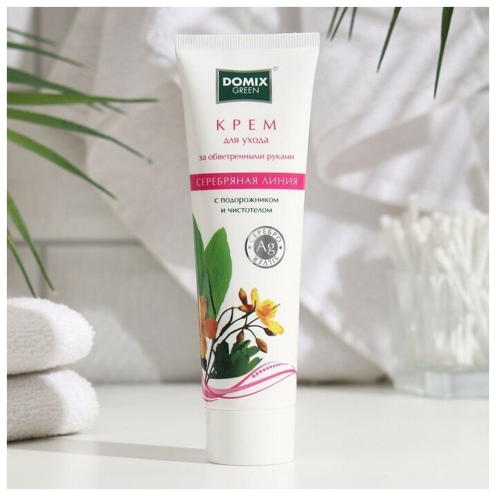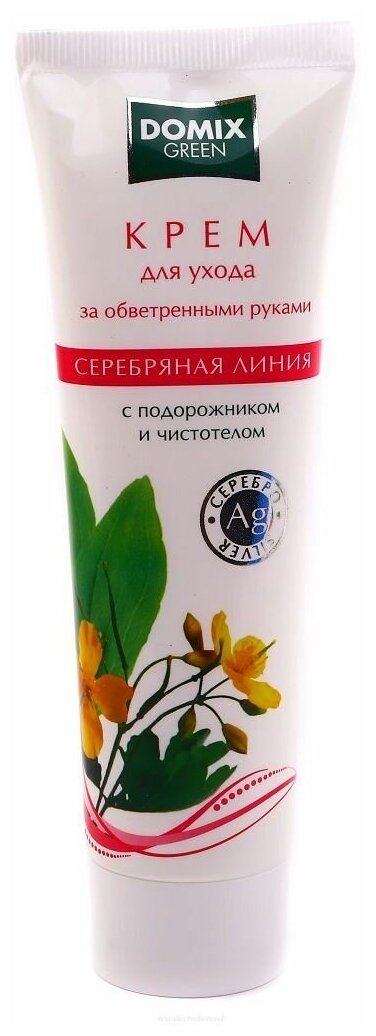 Domix Green Крем для ухода за обветренными руками Серебряная линия с подорожником и чистотелом и наносеребром, 100 мл