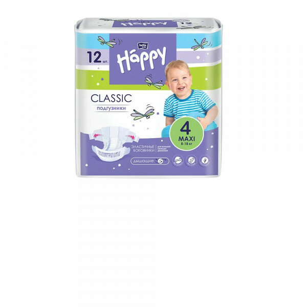 Подгузники для детей classic bella baby Happy Maxi эконом, размер 4 (вес 8-18 кг), 12 шт.