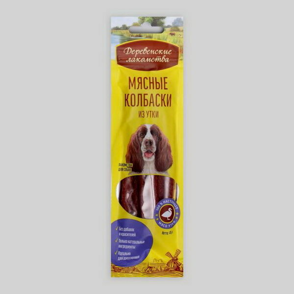 Деревенские лакомства "Мясные колбаски из утки" для собак пакет, 45 гр