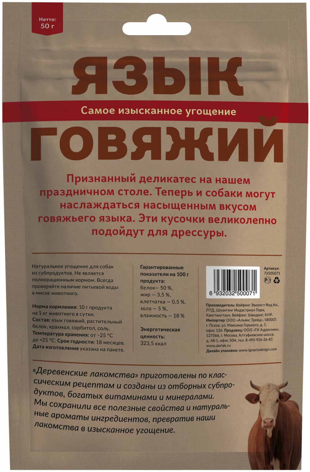 Деревенские лакомства д/собак Язык говяжий. Классические рецепты, 50 г
