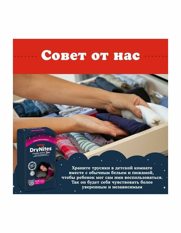 Трусики DryNites для девочек (8-15 лет), 9 шт. интересное: