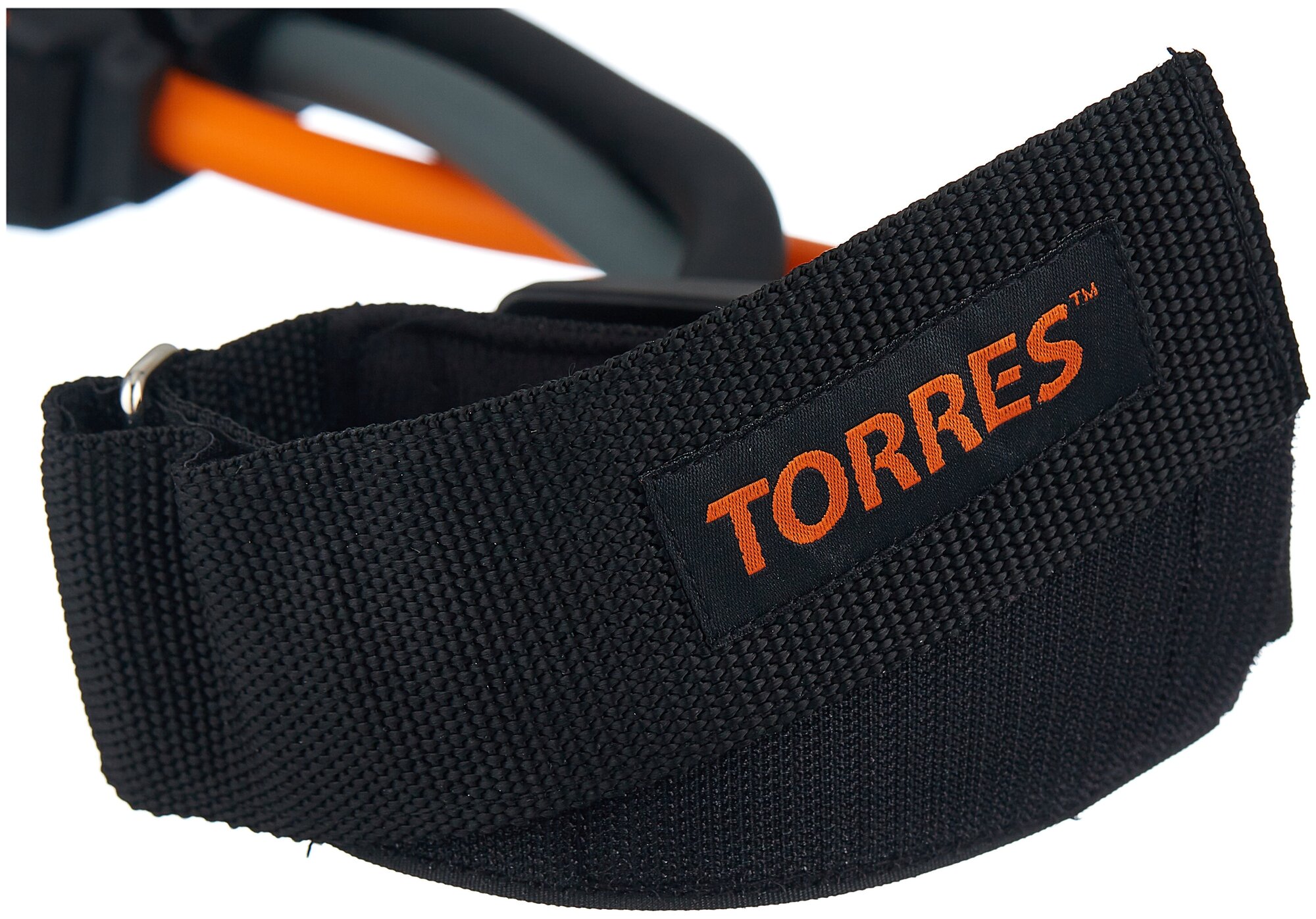 Универсальный спортивный латеральный эспандер Torres AL0045 из съемных латексных шнуров разного диаметра для отработки техники движения ног для подвижных видов спорта с манжетами для фиксации, с регулировкой сопротивления от 9 до 34 кг, оранжево-черный, д
