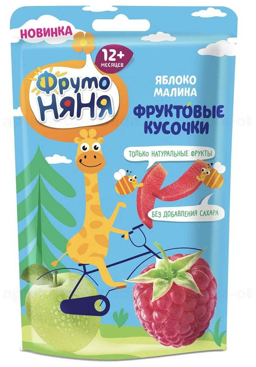 ФрутоНяня Фруктовые Кусочки из Яблок и Малины {с 12 мес} (Флоу-пак) 15г.