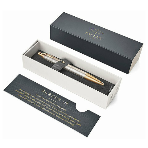 Ручка шариковая PARKER IM Premium Warm Silver GT, корпус серебристый матовый с гравировкой, позолоченные детали, синяя, 1931687