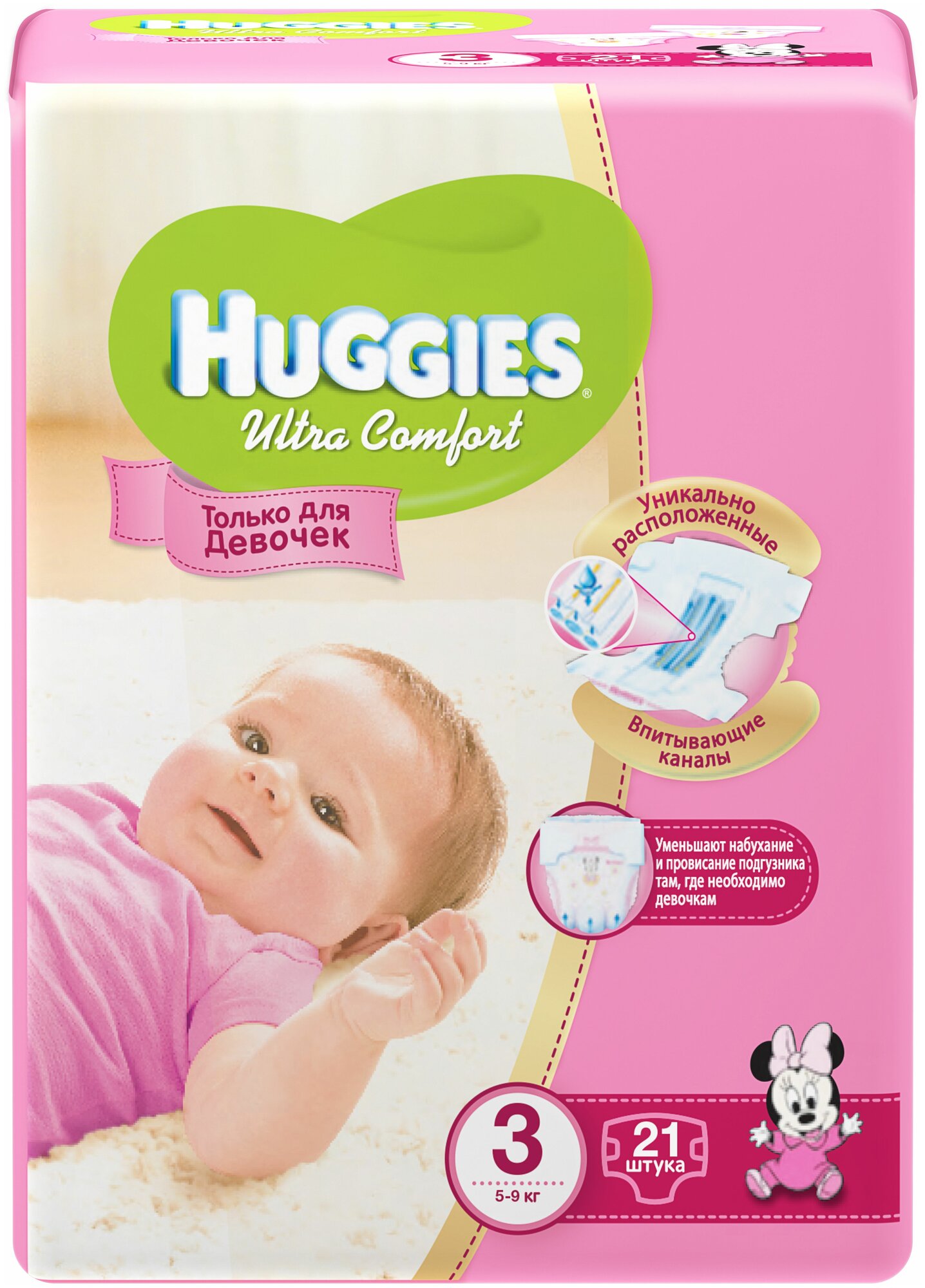 Купить Подгузники хаггис Ultra Comfort девочкам 3 (5-9 кг ), 21 шт
