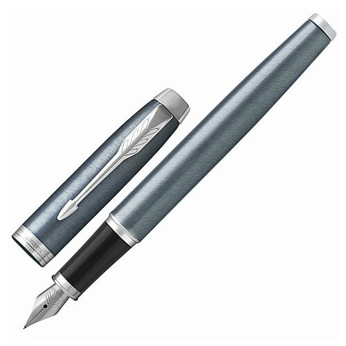 Ручка перьевая Parker "IM Core Brushed Metal GT", корпус серебристый матовый лак, позолоченные детали, синяя (1931649)