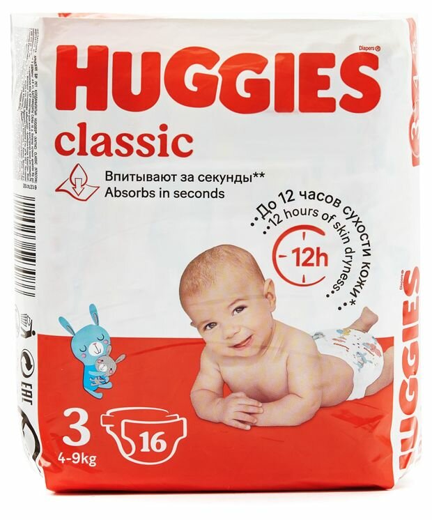 HUGGIES Подгузники HUGGIES Classic 3 размер (4-9кг) 16шт