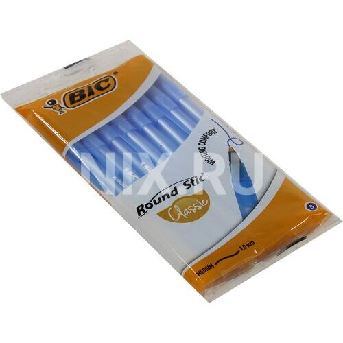 Купить Ручки шариковые BIC "Round Stic", набор 8 шт., синие, узел 1 мм, линия письма 0,32 мм, пакет, 928497