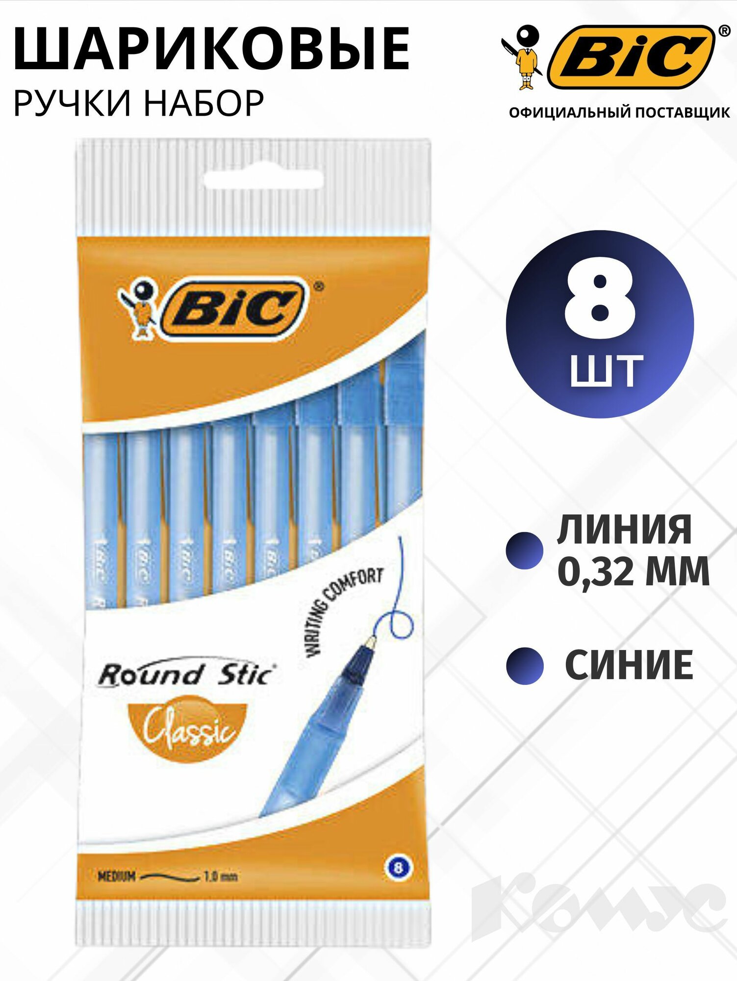 BIC Набор шариковых ручек Round Stic Classic, 1 мм, 8 шт. (928497/928498), 928497, синий цвет чернил, 8 шт.