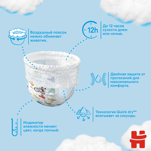 Впитываемость на высоком уровне. Запаха химии нет. Ребенок сухой, ничего не промокает. Удобно одевать, снимать. Можно регулировать. Дизайн необычный, стильные) Цена очень привлекает. До этого пользовались Трусиками Мэрис. Но нашли отличную замену и гораздо дешевле! И в упаковке больше! |