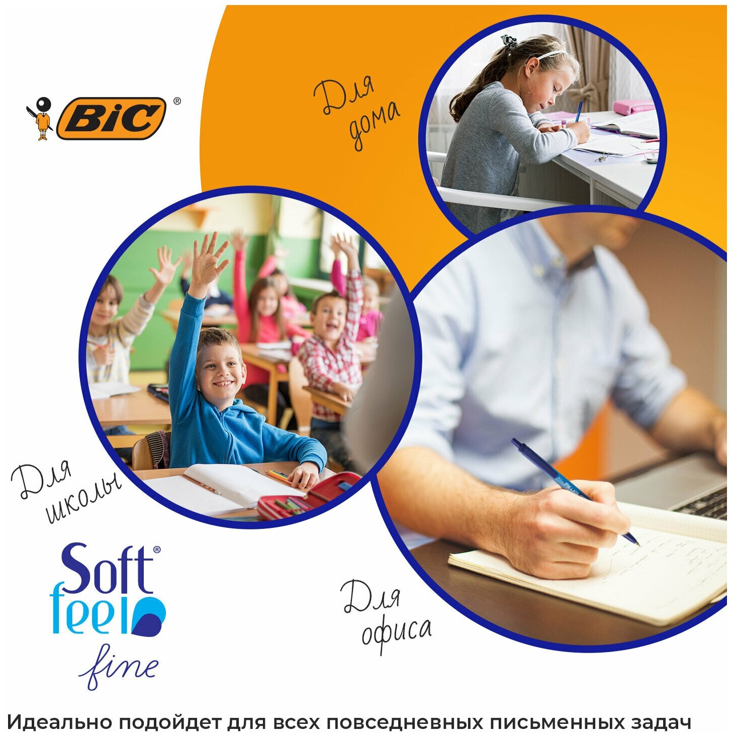 Ручки шариковые автоматические с грипом BIC "Soft Feel Fine", набор 3 шт., линия письма 0,8 мм, блистер, 893221 - 3 шт.