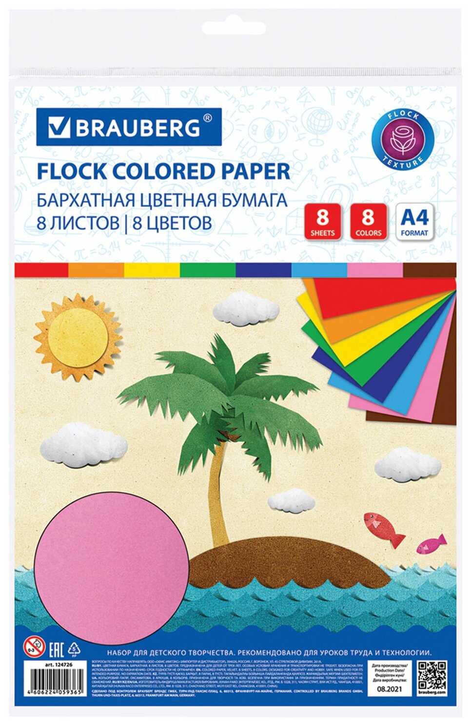 Бумага цветная бархатная Brauberg (8 листов, 8 цветов, А4) (124726), 50 уп.