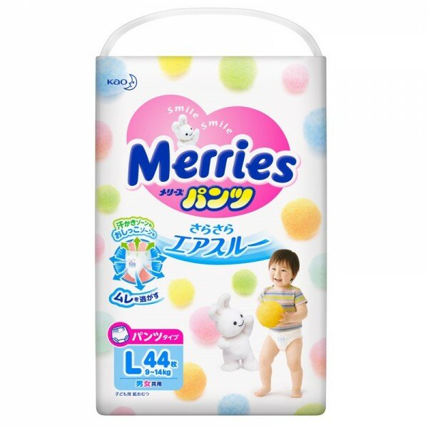 Подгузники-трусики Merries, размер L (9-14 кг), 44 шт