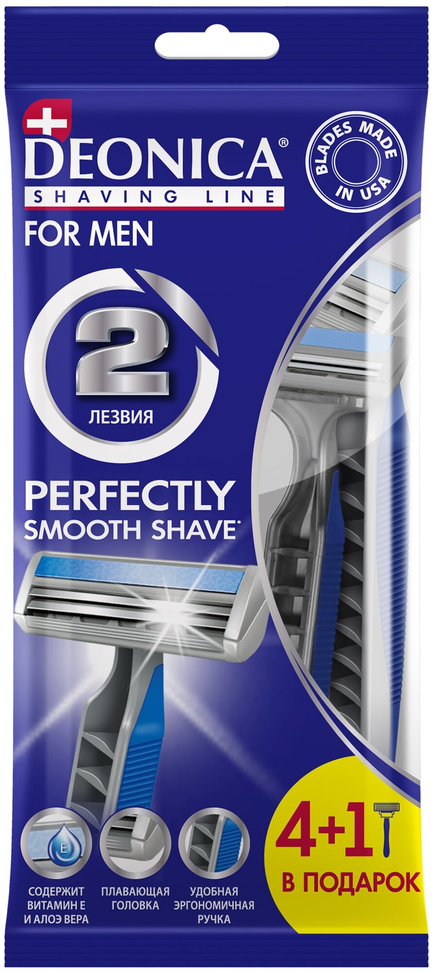Бритвы одноразовые DEONICA for Men, 2 лезвия, 4+1 шт