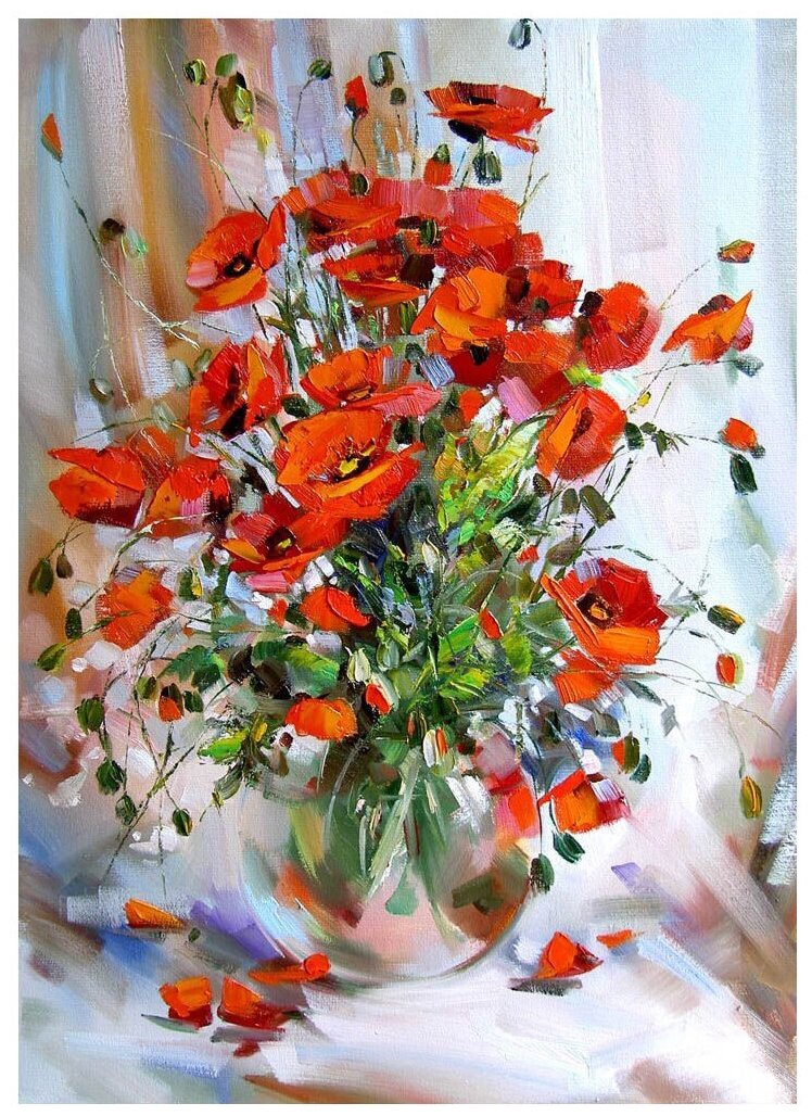 Картина по номерам Белоснежка «Букет маков» (холст на подрамнике, 40х30 см) интересное: