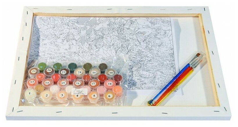 | Плюсы: | Детализация картины очень высокая. Сложность 5, Но это затягивает. Яркие краски, свежие. Холст хороший, грунтованный. |