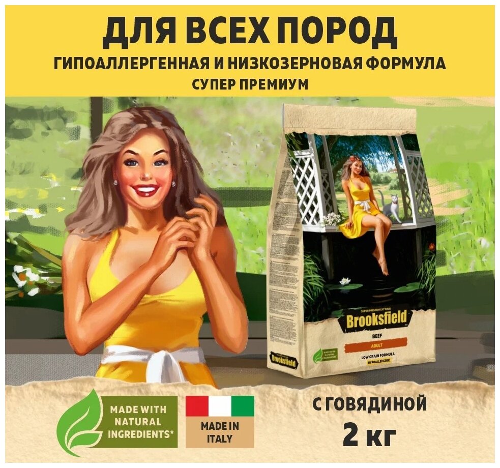 BROOKSFIELD (Бруксфилд) Low Grain Adult Cat Beef Сухой корм для взрослых кошек 2 кг, Говядина