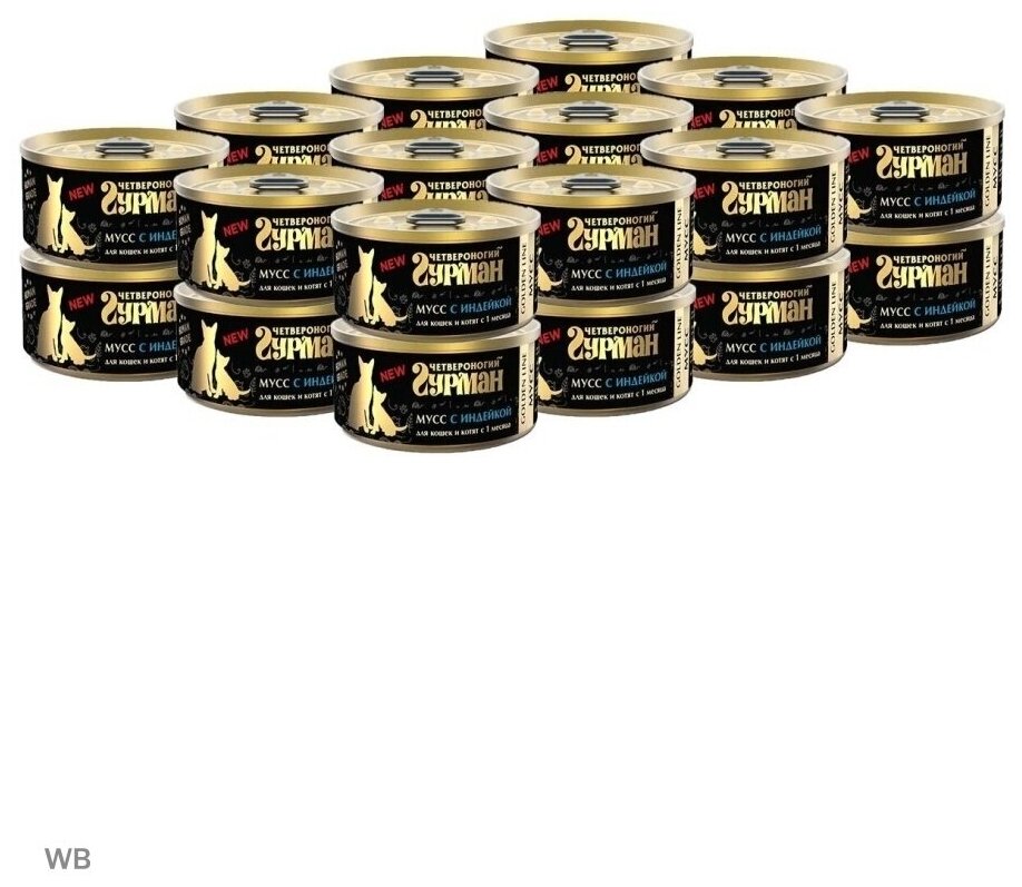 Четвероногий гурман GOLDEN LINE для кошек и котят мусс с индейкой банка 100 гр NEW 100 гр х 12 шт