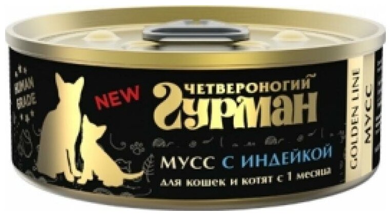 Четвероногий гурман GOLDEN LINE для кошек и котят мусс с индейкой банка 100 гр NEW 100 гр х 12 шт
