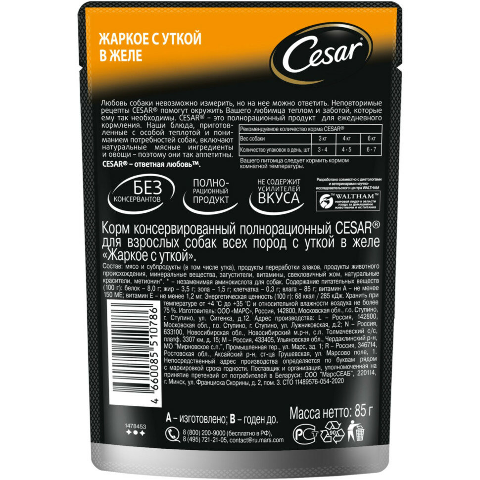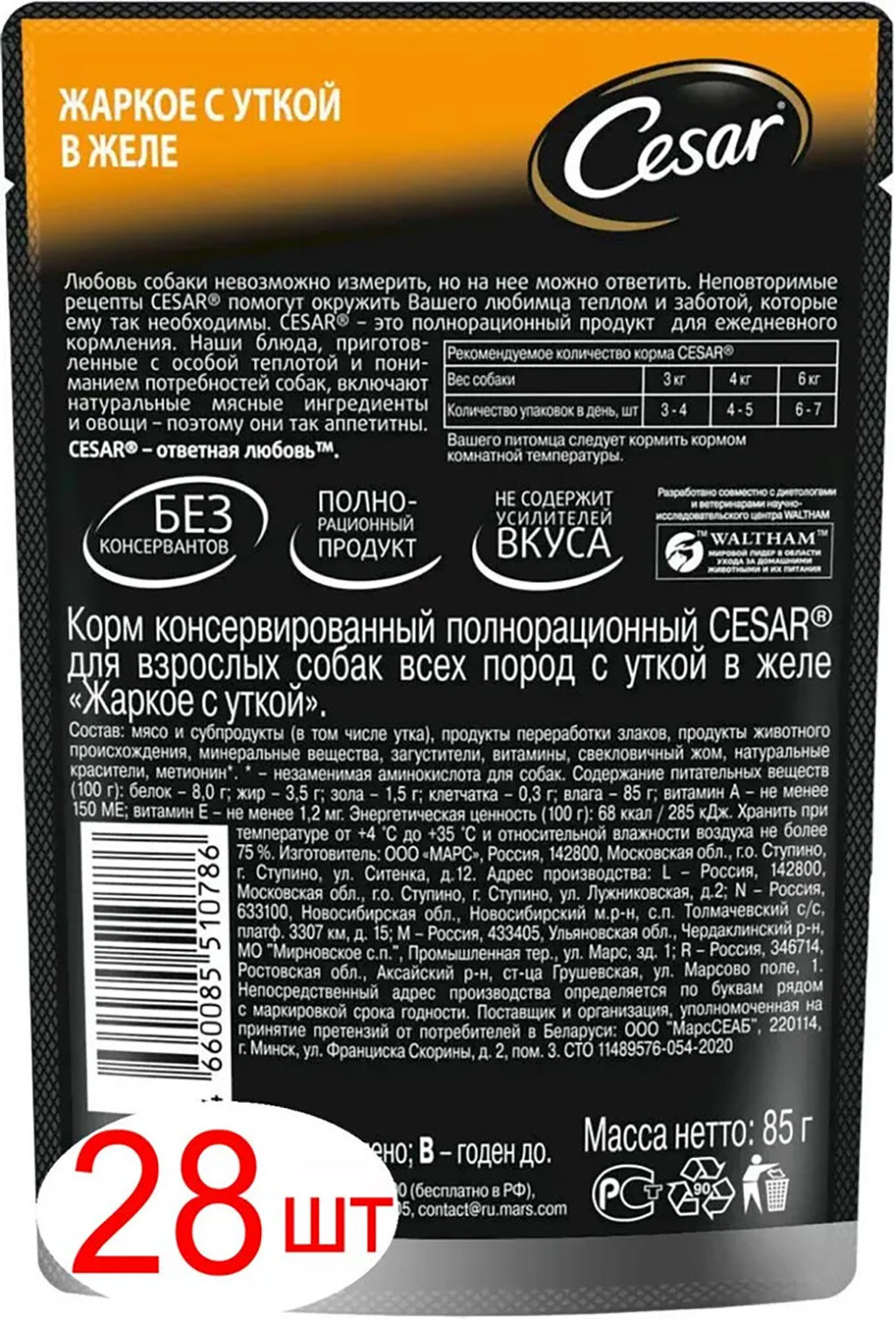 Корм Cesar (в желе) для собак, жаркое с уткой, 85 г x 28 шт