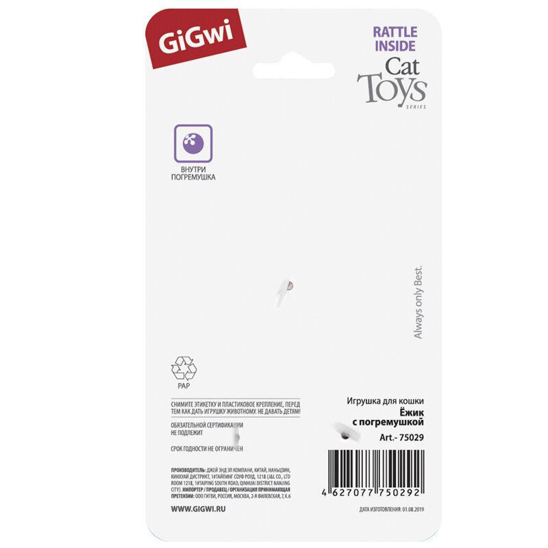 GiGwi Игрушка для кошек Ёжик с погремушкой 1шт