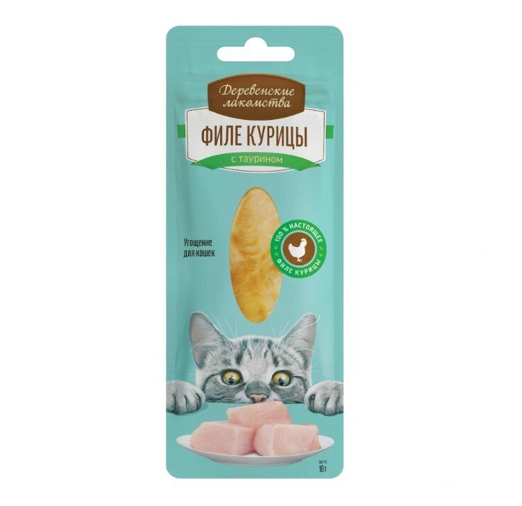 Деревенские лакомства для взрослых кошек и котов всех пород, Филе курицы нежное 10 гр