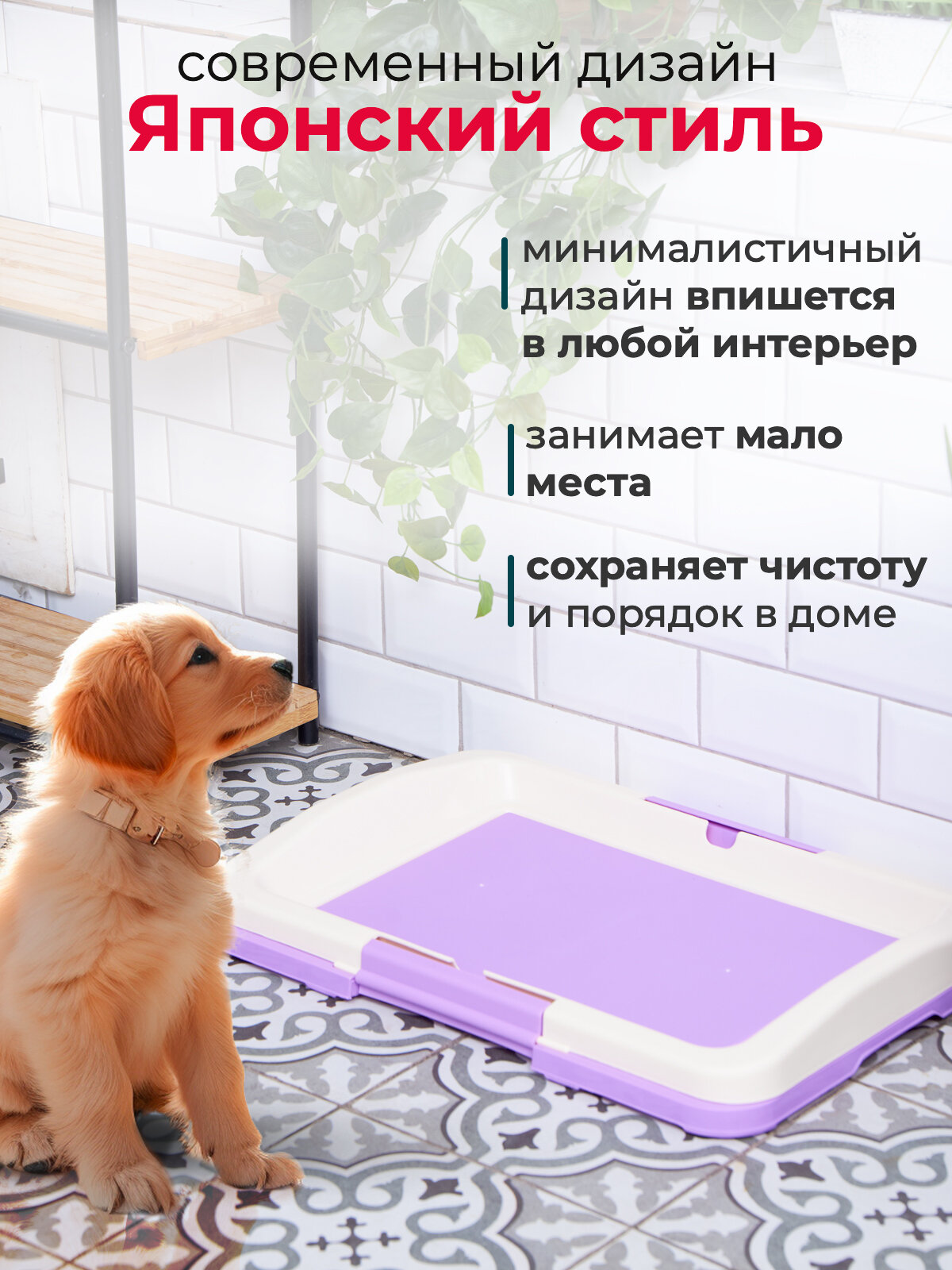 Купить Туалет лоток для собак Zoo One под одноразовую пеленку (японский стиль), малый 47*34*6 см, фиолетовый + белый, P102-06