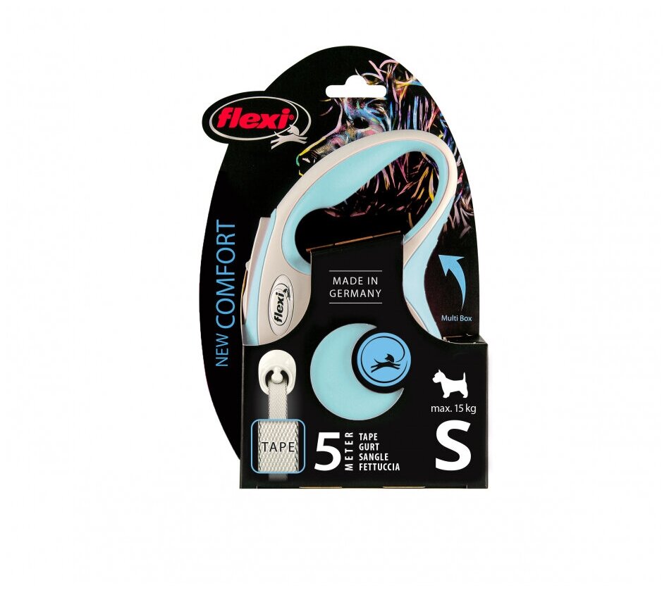 Flexi New Comfort S - Поводок-рулетка для собак, ленточный, 5м до 15кг pp44722 Голубой