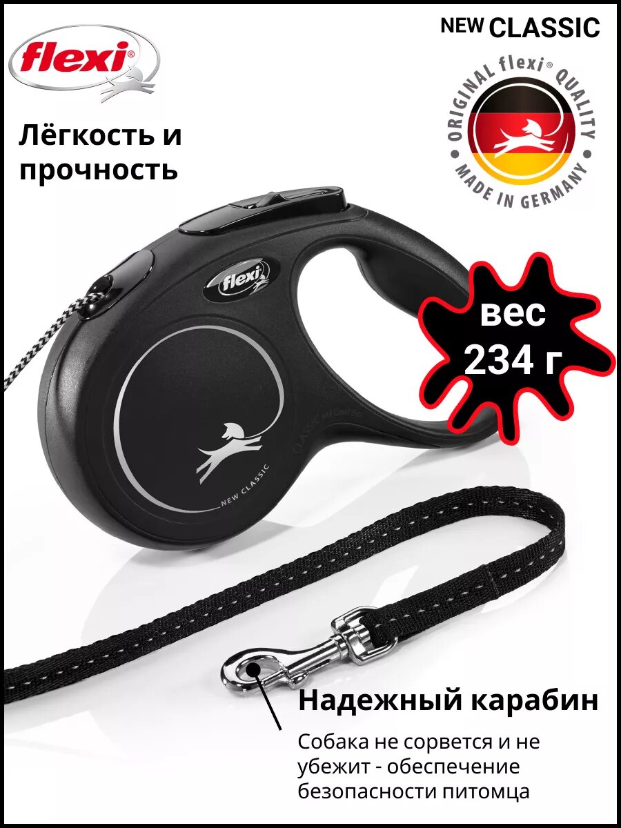 Поводок-рулетка Flexi New CLASSIC S, 5 м, 12 кг, черный