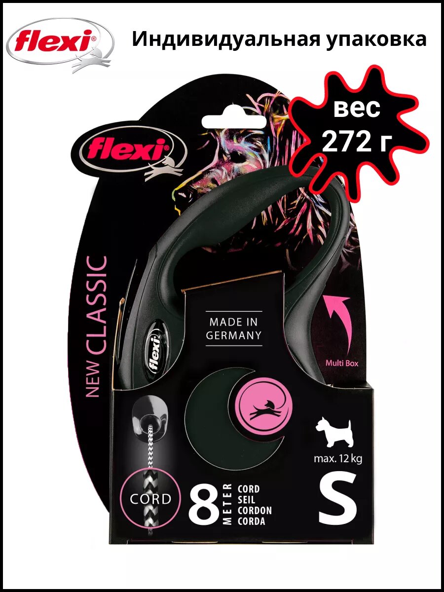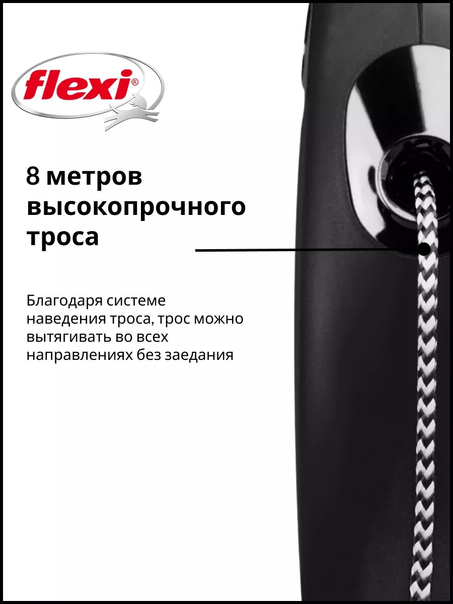 FLEXI NEW CLASSIC CORD – Флекси тросовый поводок-рулетка для животных, 8 м, размер S, черный (1 шт)