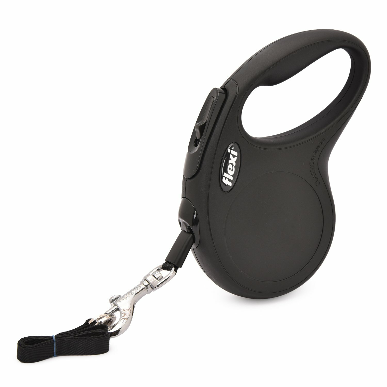 FLEXI NEW CLASSIC TAPE – Флекси ременной поводок-рулетка для животных, 5 м, размер S, черный (1 шт)