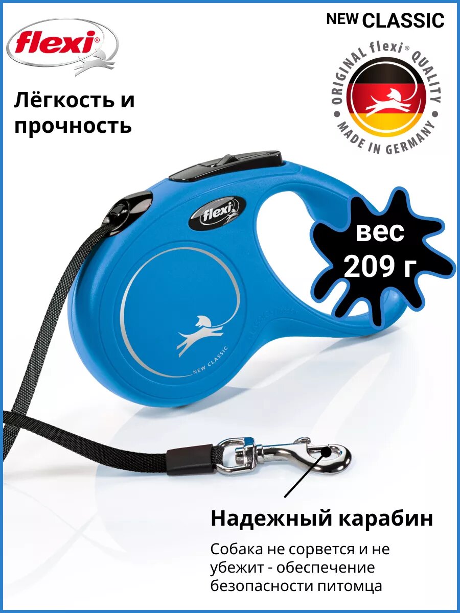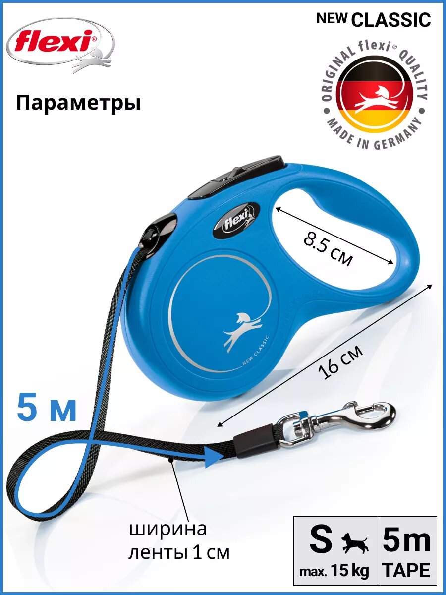 Купить Поводок-рулетка Flexi New CLASSIC S, 5 м, 15 кг, синий